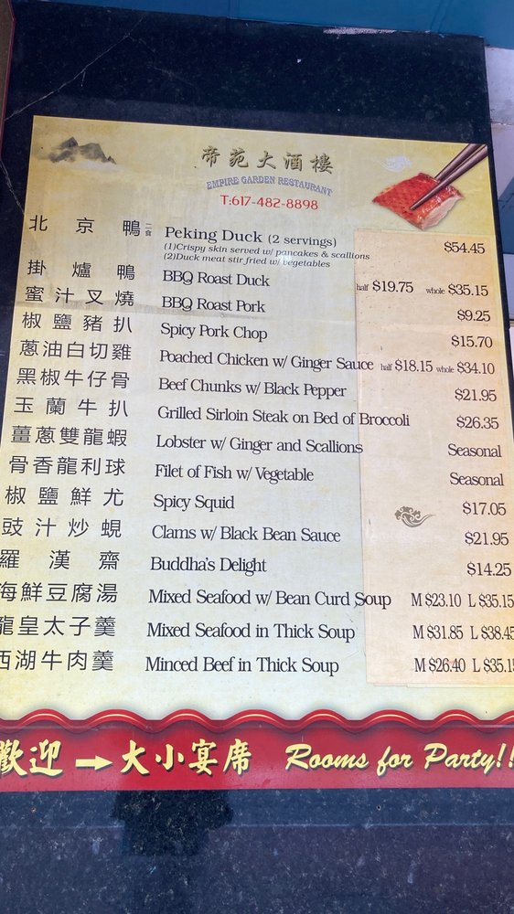 Empire Garden Restaurant in Boston offers a casual dining experience with a diverse menu and good for groups and families. Known for their dim sum cart during lunch, they provide a wide selection of dishes, including favorites like fried taro balls and pork bao. The restaurant is housed in a historic theater with high ceilings, adding to its elegant atmosphere. Customers praise the Peking duck and dim sum offerings, although some mention slow service. Their unique blend of traditional Chinese cuisine and modern dishes make Empire Garden a go-to spot for dim sum enthusiasts. Don't miss out on their affordable dim sum options and flavorful cocktails. Visit Empire Garden for a taste of authentic Chinese flavors in a charming setting.